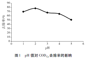 2. 2 pH值對CODCr去除率的影響