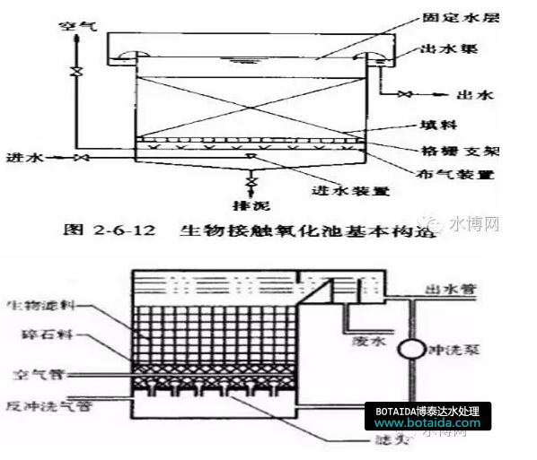 接觸生物法是一種兼有活性污泥法和生物膜法特點(diǎn)的一種新的污水生化處理方法。這種方法主要設(shè)備是生物接觸氧化濾池。在不透氣的曝氣池中裝有焦炭、礫石、塑料蜂窩等填料,填料被水侵沒,用鼓風(fēng)機(jī)在填料底部曝氣充氧。