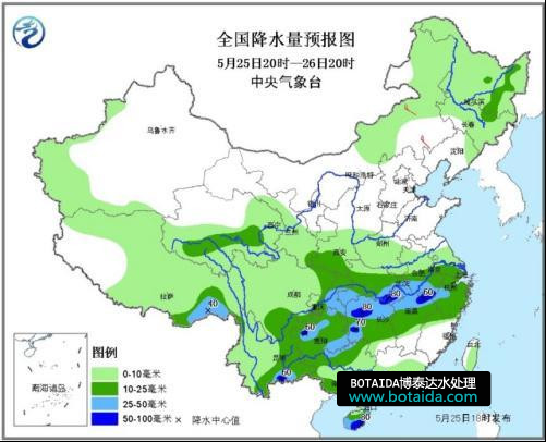 根據中央氣象臺預計,從25日起,主要降雨區域將北抬至長江中下游一帶,西南地區東部、江南中北部、江漢、江淮等地的部分地區將進入降雨集中時段。上述大部地區在未來10天內有7至8天都處于降雨狀態中,主要降雨過程出現在25日至27日和5月31日至6月2日。