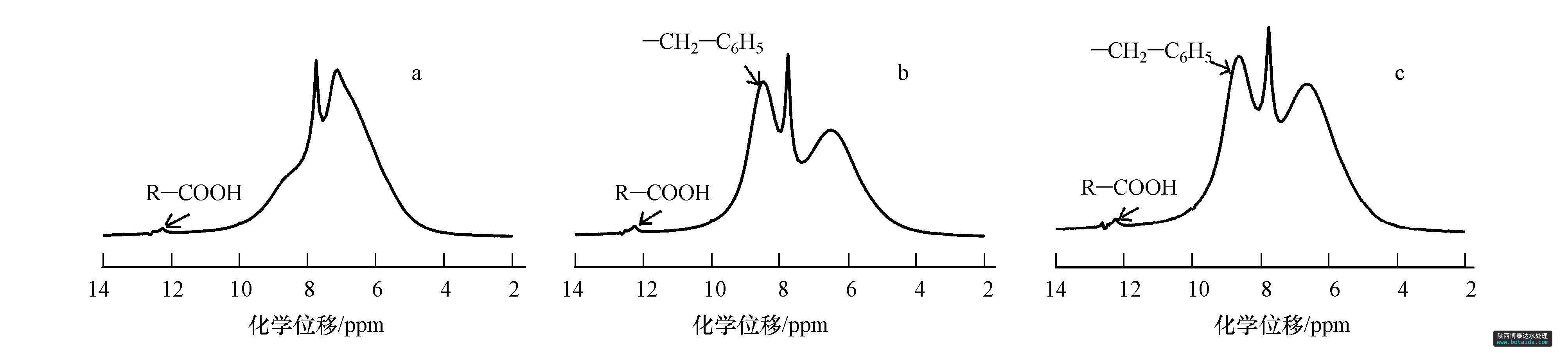 圖2 脫脂木粉(a)、芐基化木粉(b)和多微孔芐基化木粉(c)的1H NMR圖