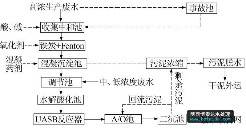 圖 1 醫藥中間體生產廢水處理工藝流程