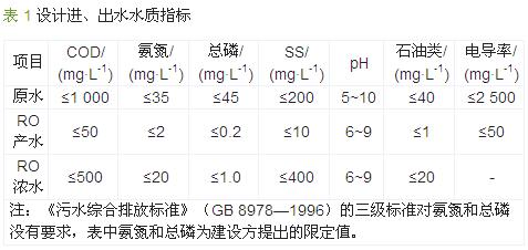 根據建設方提供的水量情況并適當考慮變化系數,設計處理規模為240 t/d,24 h連續運行,其中120 t回用于生產,另外120 t達到《污水綜合排放標準》(GB 8978—1996)三級標準后排放。