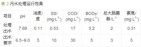 該工程竣工后進入調試階段,先后經過單機調試、單元調試、分段調試(掛膜)及整體調試等過程,20多天后出水水質達到設計要求,投入正式運行。自工程正式運行以來,處理出水水質一直穩定達標,可滿足《工業循環冷卻水處理設計規范》(GB 50050—2007)中規定的再生水作為間冷開式系統補充水的水質指標要求及《城市污水再生利用 城市雜用水水質》(GB/T 18920—2002)中城市綠化、道路清掃和沖廁的要求,主要水質指標見表 2。