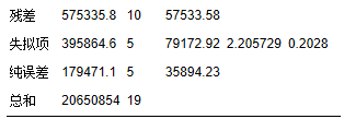 表4 回歸方程(3)的方差分析