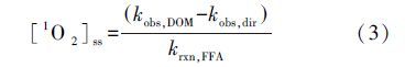式中,kobs,DOM和kobs,dir可由準一級反應動力學方程ln(C0-C)=-kt計算得到,單位為s-1,FFA和1O2雙分子反應速率常數krxn,FFA取值為8.3×107 mol · L-1 · s-1.
