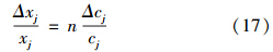 表 4 相應(yīng)于不同規(guī)范值x′j 的引力指數(shù)I對于指標監(jiān)測數(shù)據(jù)cj的靈敏度Sc