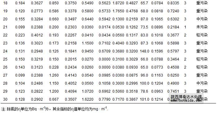 表 11 長春市30個室內(nèi)樣本監(jiān)測數(shù)據(jù)cj及其規(guī)范值 x′j和評價結(jié)果