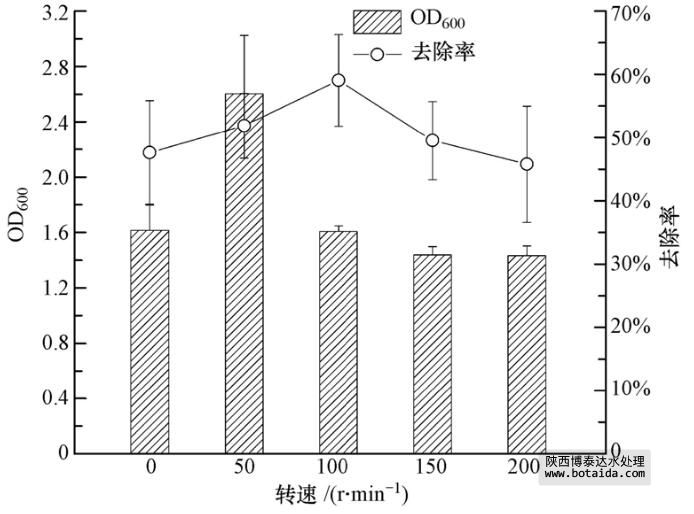 圖 8 不同搖床轉(zhuǎn)速對(duì)菌株ED-12生長(zhǎng)及除磷能力的影響