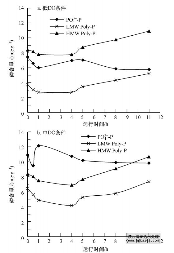 3)EPS不僅是生物除磷過程的中轉站,而且參與了生物聚磷過程.EPS的LMW Poly-P和HMW Poly-P含量均表現(xiàn)厭氧降低和好氧升高的變化規(guī)律;對于相同SRT的污泥,中DO(2.5~3.5 mg · L-1)條件較低DO(0.7~1.0 mg · L-1)條件下EPS的LMW Poly-P和HMW Poly-P有更大的厭氧降低量和好氧升高量,對應著更明顯的生物除磷過程.