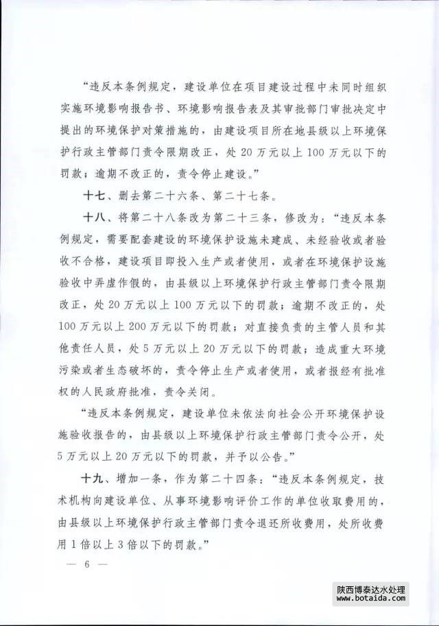 對照新老《條例》發現,新《條例》主要在以下幾方面作出了重大修改:一是刪除"環評單位資質"條款,取消了資格證書審查制度的要求;二是取消竣工環保驗收行政許可,將竣工驗收的主體由環保部門調整為建設單位;三是增加“不予審批情形”條款,明確環評審批要求;四是明確環境影響技術評估法律地位;五是取消“試生產期間要求”。六是進一步加大了違法處罰和責任追究力度。