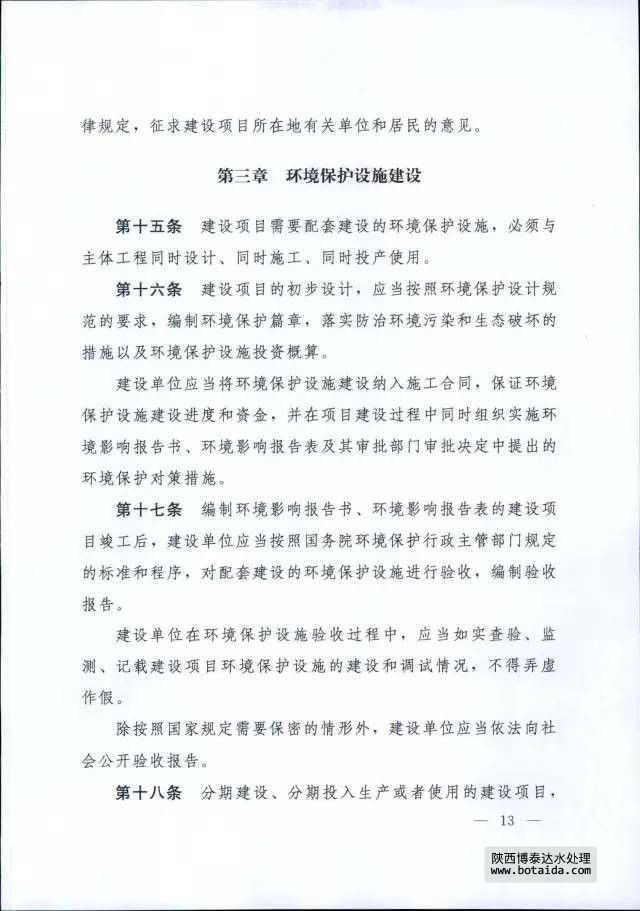 第十九條 編制環境影響報告書、環境影響報告表的建設項目,其配套建設的環境保護設施經驗收合格,方可正式投入生產或者使用;未經驗收或者驗收不合格的,不得投入生產或者使用。