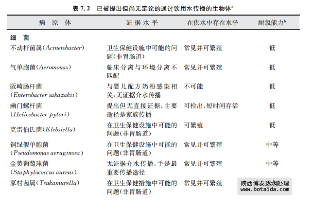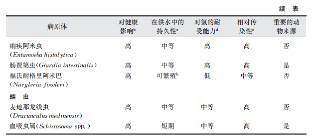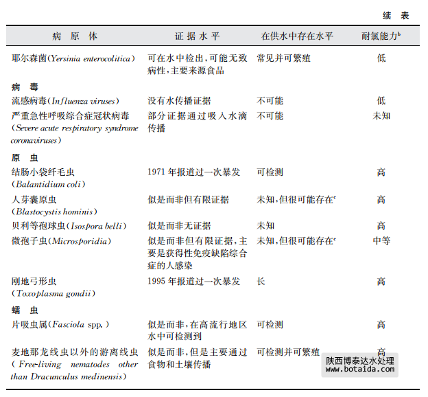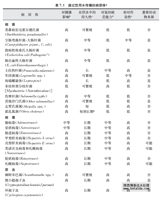 a該表中的病原體在飲用水供應中的發生與公眾衛生密切相關這一事實已經被證實。更多關于本表中病原體和其 他病原體信息見第11章內容。