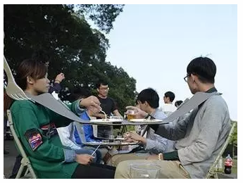 臺灣就有人發明了一款吊在脖子上的餐桌,