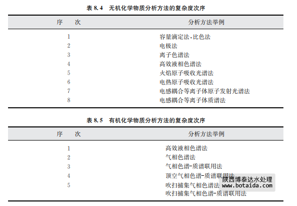 ● 如果要將某個實驗室提交的分析結果與其他實驗室的結果用數字表示的標準進行比 較,那么它們最好不帶有任何系統誤差。盡管實際上這是不可能的,但每個實驗室應選擇系 統誤差已充分評價并處于可接受的低水平的方法。 分析方法根據其技術復雜程度的定性排序如表8.4(對于無機化學物質)和表8.5所示(對于有機化學物質)。表中分組的化學物質的分析方法差別很大,次序越高,方法所需的設 備越高級或操作越復雜。通常,越高的次序也意味著越高的總經濟成本。