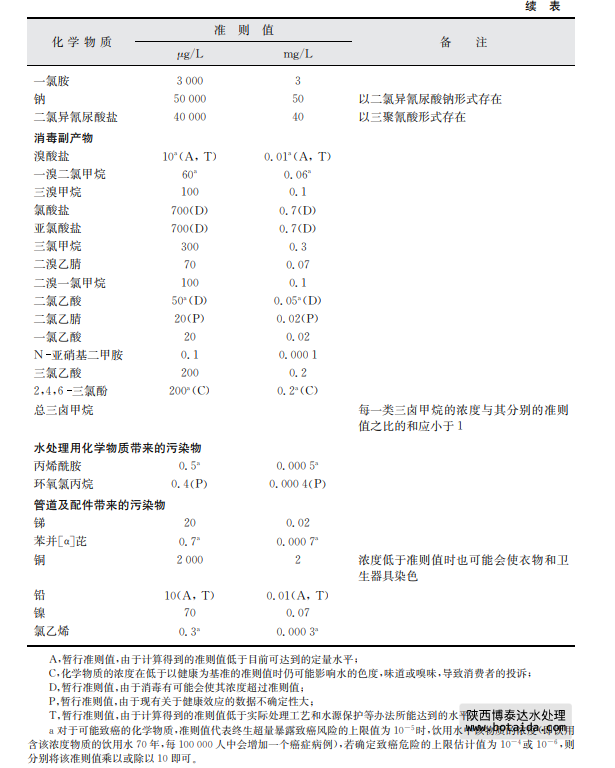 其他化學(xué)物質(zhì),如來自管道或銅質(zhì)龍頭的鉛或銅,以及從涂層溶出的化學(xué)物,可能是在 處理或輸配水過程中因水與其表面接觸而進(jìn)入水中(間接添加物)。 飲用水處理中使用的一些化學(xué)物質(zhì)(如鋁)或可能與水接觸的一些化學(xué)材料(如苯乙烯) 也許會(huì)從其他主要來源進(jìn)入水中,這些已在本章其他章節(jié)具體討論。