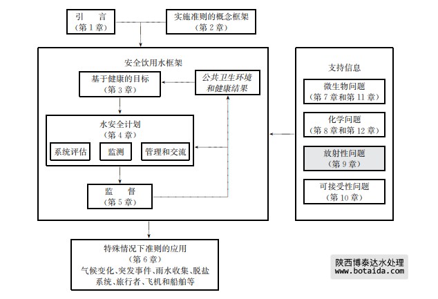 對(duì)于健康風(fēng)險(xiǎn)評(píng)價(jià)來(lái)說(shuō),本準(zhǔn)則對(duì)天然放射性同位素和人工放射性同位素同樣適用。但 對(duì)于風(fēng)險(xiǎn)管理,二者還是有些差別,因?yàn)閺睦碚撋?,人工放射性同位素在進(jìn)入供水系統(tǒng)之前是 可控的。相反,對(duì)于天然放射性同位素來(lái)說(shuō),在消費(fèi)者使用前,可在任何地點(diǎn)或多個(gè)地點(diǎn)都有 進(jìn)入供水系統(tǒng)的潛在可能性。因此,在飲用水中天然放射性同位素往往較難實(shí)施控制。