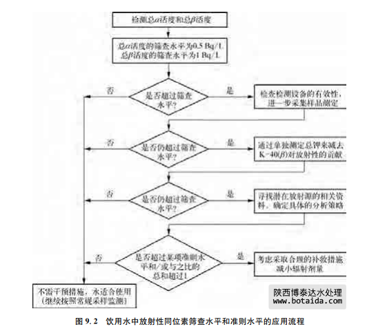 在本準則的第二版中,根據總α活度和總β活度的篩查水平分別為0.1Bq/L和1Bq/L 確定了IDC為0.1mSv/年。這個IDC表示,自然放射源對年平均放射劑量貢獻不超過5% (見9.1節)。事實上,后續的經驗證明,如果總α活度低于或等于0.5Bq/L,那么總放射劑 量也通常不會超過0.1mSv/年。因此在第三版準則中,犐犇犆基于總α活度和總β活度的篩 查水平分別為0.5Bq/L和1Bq/L,在本版準則中,依舊沿用這一改變。