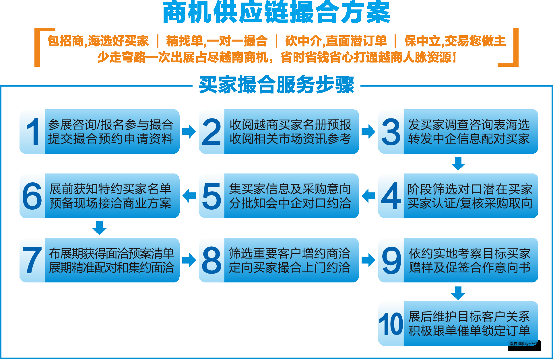 除了公共觀眾外,可量身定邀5-20家對口越商面洽