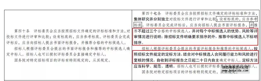 這意味著甲方有著更大的自主選擇權,而評標委員會只推薦三個中標候選人,而且不用排序。也就是說,不會有第一中標候選人、第二中標候選人、第三中標候選之說。這也打破了評標委員會推薦的第一中標候選人默認為中標人的長期慣例。甲方只需要在三個中標候選人當中,自主確定中標人。