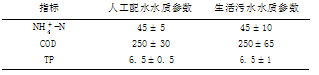 表 2 人工配水和生活污水水質組分/ mg·L - 1