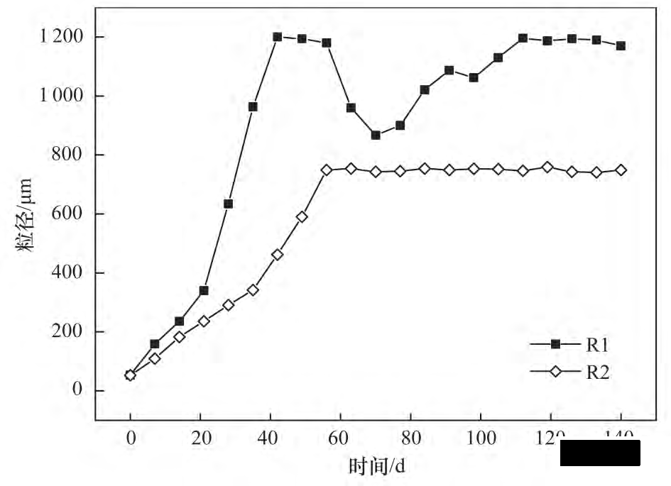 圖 2 R1 和 R2 運行期間粒徑變化