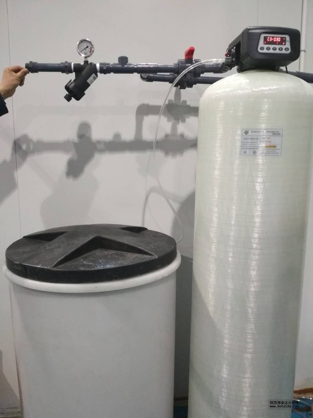 當樹脂吸收一定量的鈣和鎂離子時,必須再生。再生過程是用鹽箱中的鹽水沖洗樹脂層,更換樹脂上的硬度離子,并在再生廢液排出罐中恢復軟化的交換功能。