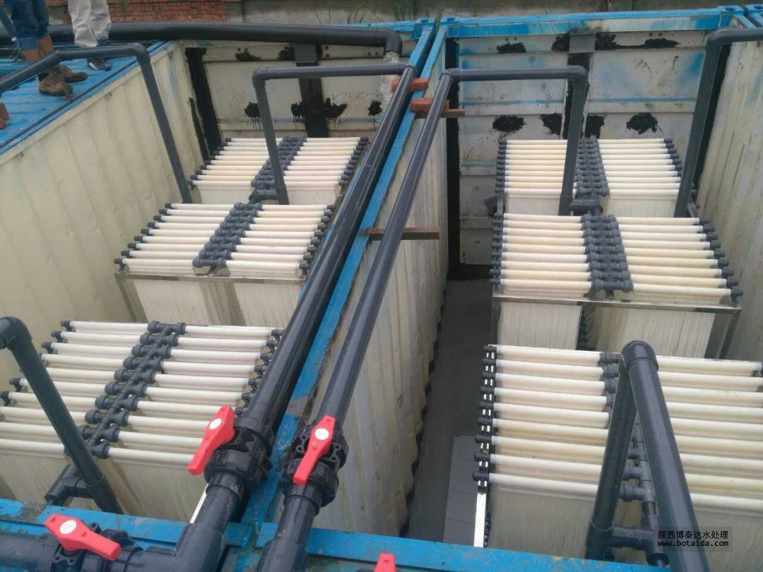 生物接觸氧化法是小型生活污水處理較早的采用的技術之一,它兼備活性污泥法和生物膜法優點的污水處理技術。其主要構筑物為生物接觸氧化池,氧化池內充填填料。生物接觸氧化法具有多種凈化功能,不僅可以有效地去除有機物,還能達到脫氧和除磷的效果。主體工藝流程為:原污水→初沉池→接觸氧化池→二沉池→超濾處理系統→消毒→排放。
