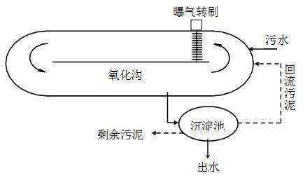 污水進入氧化溝和活性污泥充分混合,再通過曝氣裝置特定的定位作用進而產(chǎn)生曝氣推動,使得污水與污泥在閉合渠道內(nèi)成懸浮狀態(tài)做不停的循環(huán),污泥在循環(huán)中進一步與污水充分混合,其中微生物與有機物充分反應(yīng),然后混著污泥的污水進入二沉池,進行固液分離,使污水得到凈化。