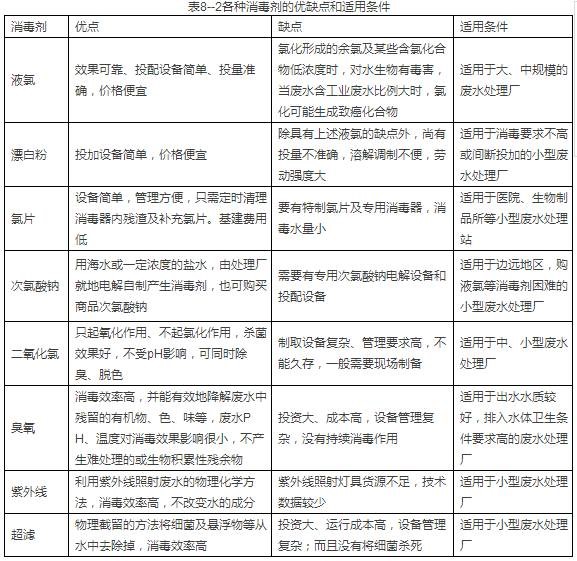 各種消毒劑的優缺點和適用條件見表8--2。參考此表,可以初步確定應該使用的消毒劑。
